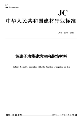 JCT2040-2010 负离子功能建筑室内装饰材料.doc