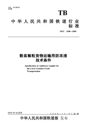 TBT3208-2008 散装颗粒货物运输用防冻液技术条件.docx