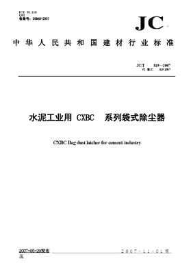 JCT819-2007 水泥工业用CXBC系列袋式除尘器.doc