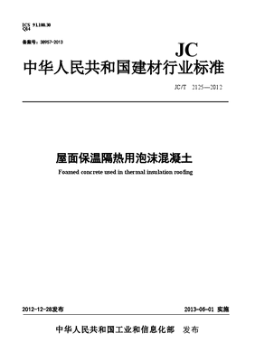 JCT2125-2012 屋面保温隔热用泡沫混凝土.doc
