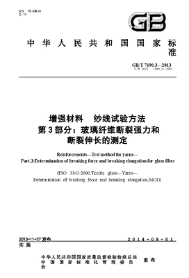 GBT7690.3-2013 增强材料 纱线试验方法 第3部分 玻璃纤维断裂强力和断裂伸长的测定.docx