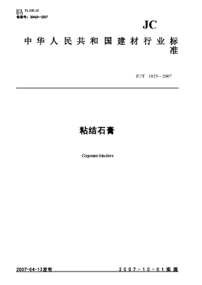JCT1025-2007 粘结石膏.doc
