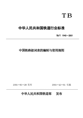 TBT1943-2001 中国铁路叙词表的编制与使用规则.docx