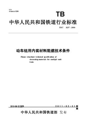 TBT3237-2010 动车组用内装材料阻燃技术条件.docx