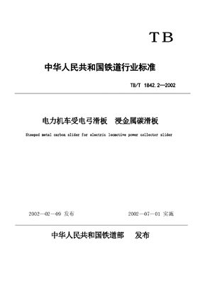 TBT1842.2-2002 电力机车受电弓滑板 浸金属碳滑板.docx