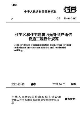 GB50846-2012 住宅区和住宅建筑内光纤到户通信设施工程设计规范.docx