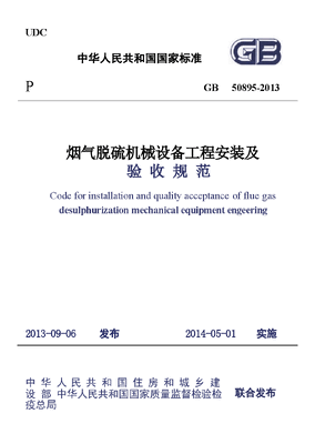 GB50895-2013 烟气脱硫机械设备工程安装及验收规范.docx