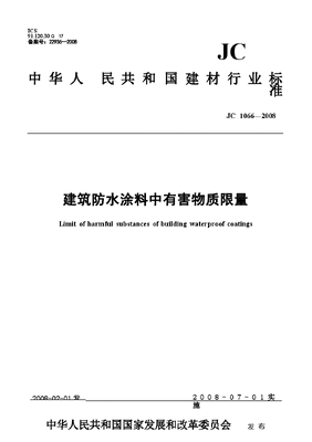 JC1066-2008 建筑防水涂料中有害物质限量.docx