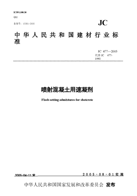 JC477-2005 喷射混凝土用速凝剂.docx