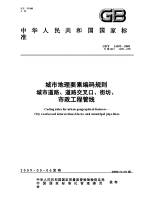 GBT14395-2009 城市地理要素编码规则 城市道路、道路交叉口、街坊、市政工程管线.docx