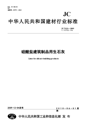 JCT621-2009 硅酸盐建筑制品用生石灰.doc