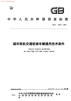 GBT23431-2009城市轻轨交通铰接车辆通用技术条件规范.docx