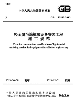 GB50882-2013 轻金属冶炼机械设备安装工程施工规范.docx
