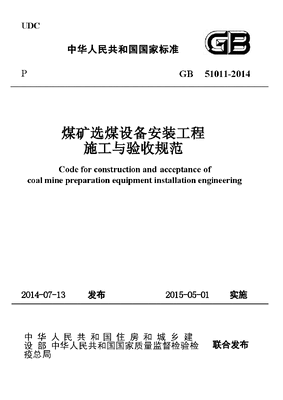 GB51011-2014 煤矿选煤设备安装工程施工与验收规范.docx