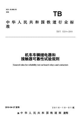TBT3219-2010 机车车辆继电器和接触器可靠性试验规则.docx