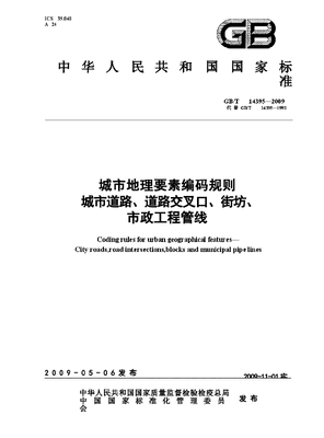 GBT14395-2009 城市地理要素编码规则 城市道路、道路交叉口、街坊、市政工程管线.docx