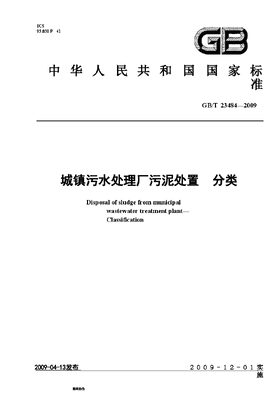 GBT23484-2009 城镇污水处理厂污泥处置 分类.doc