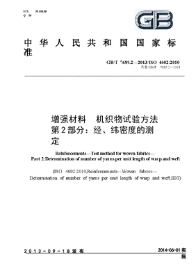 GBT7689.2-2013 增强材料 机织物试验方法 第2部分:经、纬密度的测定.docx