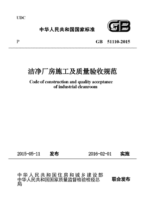 GB51110-2015 洗净厂房施工及质量验收规范.docx