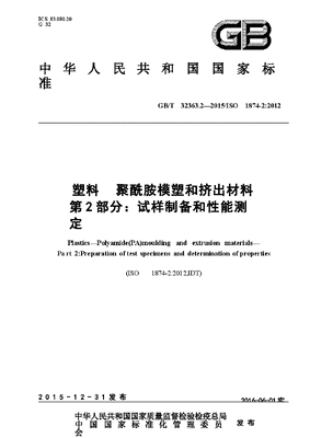 GBT32363.2-2015 塑料 聚酰胺模塑和挤出材料 第2部分:试样制备和性能测定.docx