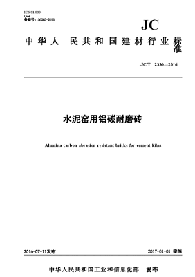 JCT2330-2016 水泥窑用铝碳耐磨砖.doc