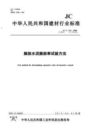 JCT313-2009 膨胀水泥膨胀率试验方法.doc