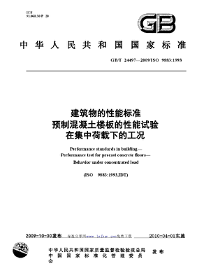 GBT24497-2009 建筑物的性能标准 预制混凝土楼板的性能试验 在集中荷载下的工况.doc