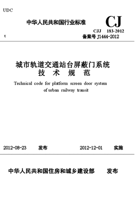 CJJ183-2012 城市轨道交通站台屏蔽门系统技术规范.docx