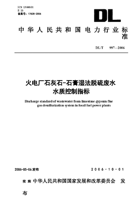 DLT997-2006 火电厂石灰石一石膏湿法脱硫废水水质控制指标.docx
