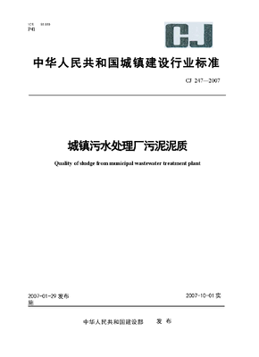 CJ247-2007 城镇污水处理厂污泥泥质.docx