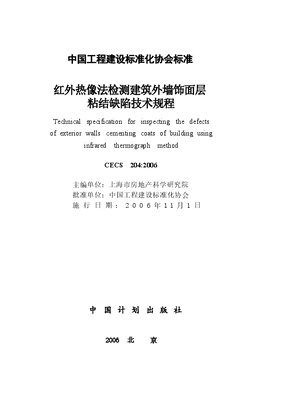 CECS204-2006 红外热像法检测建筑外墙饰面层粘结缺陷技术规程.docx