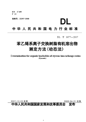 DLT1077-2007 苯乙烯系离子交换树脂有机溶出物测定方法(动态法).docx