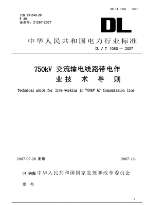 DLT1060-2007 750kV交流输电线路带电作业技术导则.docx