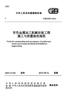 GB51059-2014 有色金属加工机械安装工程施工与质量验收规范.docx