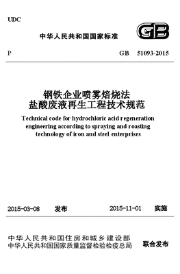 GB51093-2015 钢铁企业喷雾焙烧法盐酸废液再生工程技术规范.docx