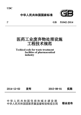 GB51042-2014 医药工业废弃物处理设施工程技术规范.docx