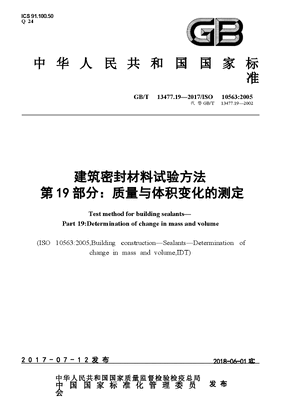 GBT13477.19-2017 建筑密封材料试验方法 第19部分:质量与体积变化的测定.docx