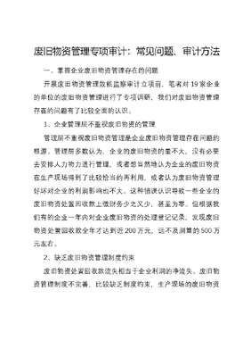 废旧物资管理专项审计:常见问题、审计方法.docx