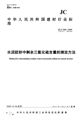 JCT668-2009 水泥胶砂中剩余三氧化硫含量的测定方法.docx