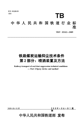 TBT3210.2-2009 铁路煤炭运输抑尘技术条件 第2部分:喷洒装置及方法.docx