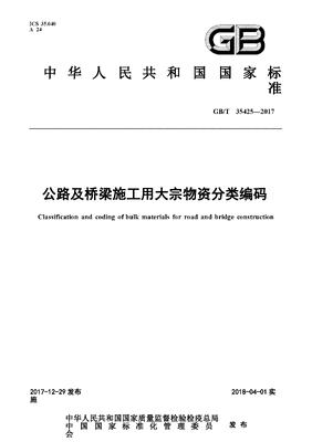 GBT35425-2017 公路及桥梁施工用大宗物资分类编码.docx