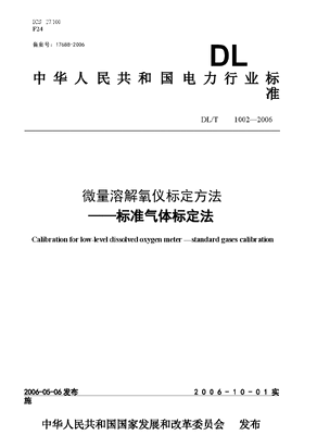 DLT1002-2006 微量溶解氧仪标定方法-标准气体标定法.docx