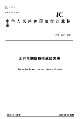 JCT2234-2014 水泥早期抗裂性试验方法.doc