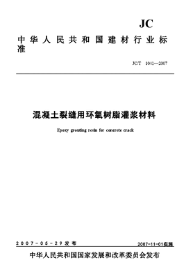 JCT1041-2007 混凝土裂缝用环氧树脂灌浆材料.doc