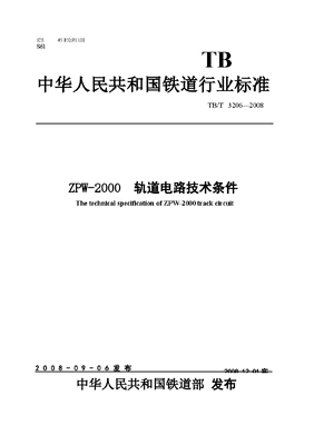TBT3206-2008 ZPW-2000轨道电路技术条件.docx