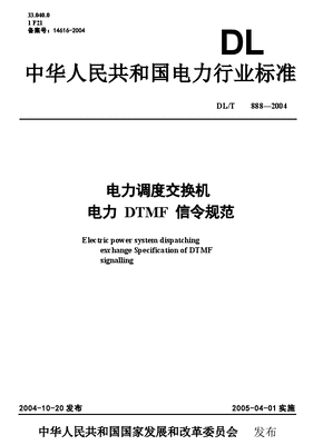 DLT888-2004 电力调度交换机电力DTMF信令规范.docx