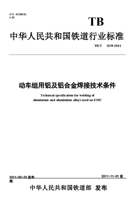 TBT3259-2011 动车组用铝及铝合金焊接技术条件.docx
