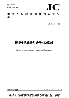 JCT1011-2006 混凝土抗硫酸类侵蚀防腐剂.doc