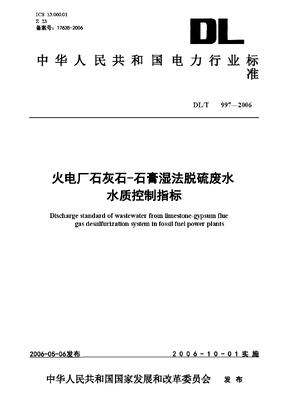 DLT997-2006 火电厂石灰石一石膏湿法脱硫废水水质控制指标.doc