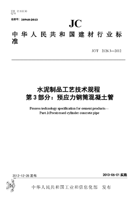 JCT2126.3-2012 水泥制品工艺技术规程 第3部分:预应力钢筒混凝土管.docx